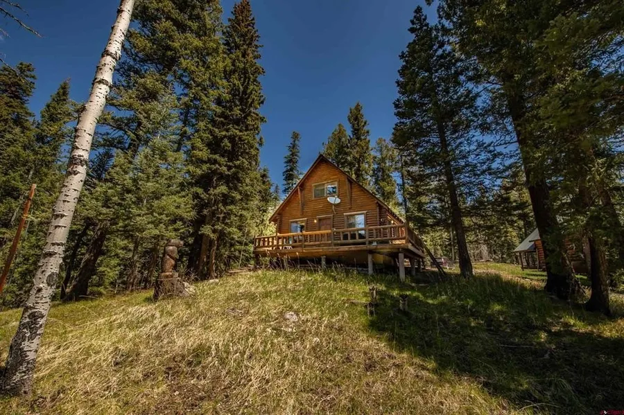 Steven Crow, Galles Properties, C: 970-946-2134, , Your quintessential Colorado mountain cabin awaits at 102 Meadowbrook Park! Wake up to towering aspens, ponderosas, and firs in this turn-key log retreat only 11 miles north of Pagosa Springs. Set on the edge of the San Juan National Forest, the fully furnished cabin lets you step straight from your deck onto thousands of acres of wilderness for hiking, biking, riding, snowmobiling, and more. Inside, a stone accent wall with a pellet-stove insert anchors the open living room, kitchen, and dining area—perfect for gathering after a day on the trails. The main level also features a bedroom, full bath, and convenient laundry. Upstairs, two spacious bunk rooms flank a shared closet, easily sleeping family and friends. Relax on the deck while wildlife wanders by, fire up the grill for summer barbecues, and listen to McCabe Creek meandering below the property. Community perks include central water (about $45/month) and low HOA dues of just $350/year. If you’re seeking an effortless getaway with unbeatable National Forest access and true Colorado charm, this Lost Valley of the San Juans cabin is ready to welcome you home.