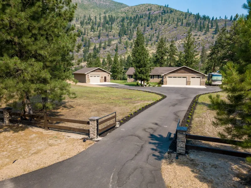 Appx 230' of Clark Fork River frontage! Flat 1.65 acres with mature pines, 80% landscaped with the entire property covered with underground sprinklers. Stunning 3 BR 2 bath home with 2 car attached garage PLUS a detached garage/shop/guest quarters with 2 bedrooms and 1 bath. Home is designed so that the front is accessible without any stairs; doorways and wide hall enough for easy access. All rooms have spectacular views of Clark Fork River or mountains. LED lighting in and out (all exterior soffits are closed in with recessed LED lighting), under cabinet lighting, automatic night lighting in the hallway. Wall of windows in the living room with breathtaking views of the river. Covered 10x64 exterior deck with access from the master, living and 2nd bedroom.