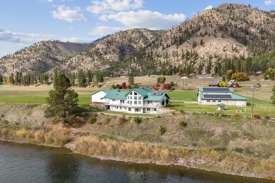 SELLER OPEN TO CARRYING WITH ACCEPTABLE TERMS. This pristine 33 acre ranch in Western Montana offers a unique and captivating retreat. With its beautifully designed 7,123 sq ft home, picturesque landscape, and versatile barn, it presents a rare opportunity for discerning buyers seeking a peaceful and luxurious lifestyle or exploring the potential for various business ventures. As you enter the property, you are greeted by a tree-lined driveway that winds through the picturesque landscape of hay fields and showcases the natural beauty of Western Montana's rugged terrain. The expansive 33 acre ranch, nestled within the Bitterroot Mountains of Superior and bordered by the Clark Fork River, offers a tranquil and secluded retreat. The focal point of the property is the magnificent 7,123 sq ft home, which radiates timeless charm and impeccable craftsmanship. The attention to detail and pride in ownership are evident in every aspect of the home, creating a warm and welcoming atmosphere. From the moment you step inside, you are enveloped in a sense of comfort and luxury. The interior of the home is designed to maximize both functionality and aesthetics. Spacious living areas seamlessly flow into one another, creating an open floor plan that is perfect for entertaining or enjoying quality time with family and friends. Large windows throughout the home frame breathtaking views of the surrounding mountains, inviting the beauty of nature inside. The ranch also features a 55x60 barn, providing ample space for storing equipment, housing livestock, or pursuing equestrian interests. The barn adds to the charm of the property and offers additional possibilities for its use. Whether you choose to make this ranch your primary residence or explore its potential as an outfitters base camp, corporate retreat, or entertaining venue, the possibilities are endless. The serene setting and natural surroundings provide a peaceful escape from the fast-paced world, allowing you to reconnect with nature and find solace in its beauty. Step into the main level living area and be greeted by the awe-inspiring vaulted ceilings that not only enhance the visual appeal of the interior but create a remarkable sense of spaciousness and grandeur. Your gaze will naturally be drawn upward towards the breathtaking views of the majestic mountains, perfectly framed by the vertical expanse. The heightened ceiling allows for improved air circulation and the abundant natural light floods the space, contributing to an inviting and comfortable atmosphere. As you bask in the serene ambiance, the floor-to-ceiling windows in the living room accentuate the tranquility and are complemented by the magnificent custom-built wood-burning rock fireplace. The main and lower-level decks that wrap around the home provide multiple vantage points to savor the surrounding vistas. The kitchen is thoughtfully appointed with elegant granite countertops, tasteful tile backsplashes, and a spacious island that comfortably accommodates seating for six. The primary bedroom, located on the main level, offers a retreat-like experience with its oversized walk-in tiled shower and a large soaking tub affording views of the river. For the nature enthusiast, the loft presents an ideal perch to observe the captivating Bitterroot Mountains and the abundant wildlife such as deer, elk, and bald eagles. The basement, featuring radiant floor heating, provides a blank canvas for customization, spanning over 3,300 sq ft and offering endless possibilities as an entertainment area, media room, or hobby space. It already includes a fully finished section with a full bathroom and bedroom, as well as a separate laundry area in the utility room. The security of your valuables is ensured with a 5x8 walk-in safe vault. The remarkable 55x60 barn is equipped with separate living quarters spanning 600 sq ft, four horse stalls, a tack room, a stock room, a workshop/equipment room, and a loft for additional storage. Customized with compressor outlets and a 30 AMP power/water/dump station, it features a convenient 12x18 garage door, perfect for accommodating an RV. A commercial-grade air compressor is included. This ranch offers a unique location with river frontage access to the Clark Fork River. Walking paths lead from the house to two small beach areas along the river, providing a front-row seat to observe osprey and eagles in flight. Powered by 48 solar panels with a 12.5 Kwh inverter, this energy efficient home is also equipped with radiant floor heating and a solar-generated hot water system providing cost-effective energy. The radiant heating system is connected to seven thermostats with seven loops throughout the home providing customized room temperatures. The house and barn also utilize electricity generated from the solar panels. Ranch offers a hitching post, outdoor wash areas, and an area fenced adjacent to the barn for horses or livestock. Lastly, a 1973 Fleetwood manufactured home is included with the purchase, adding an additional residential option. To truly appreciate the extensive charm, beauty, and thoughtful details of this remarkable ranch, it is recommended to schedule a private tour. Call OR text Kim Williams at 406-546-6342 or your real estate professional.