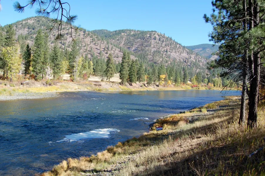 River front lot, app 167' of river frontage. Flat, mature pines, in an area of beautiful homes. Paved road. Underground 3,000 gallon water tank for fire suppression for all homes near lot 1. Tank was added by original subdivision owners so expensive interior water suppression sprinklers would not be required for each individual home. Utilities at road. $25/month HOA for road maintenance/snow removal. Bring your own builder! Corners marked. All this just 25 minutes from Missoula! Fish or float right from your back door. EZ 20 minutes from Missoula.