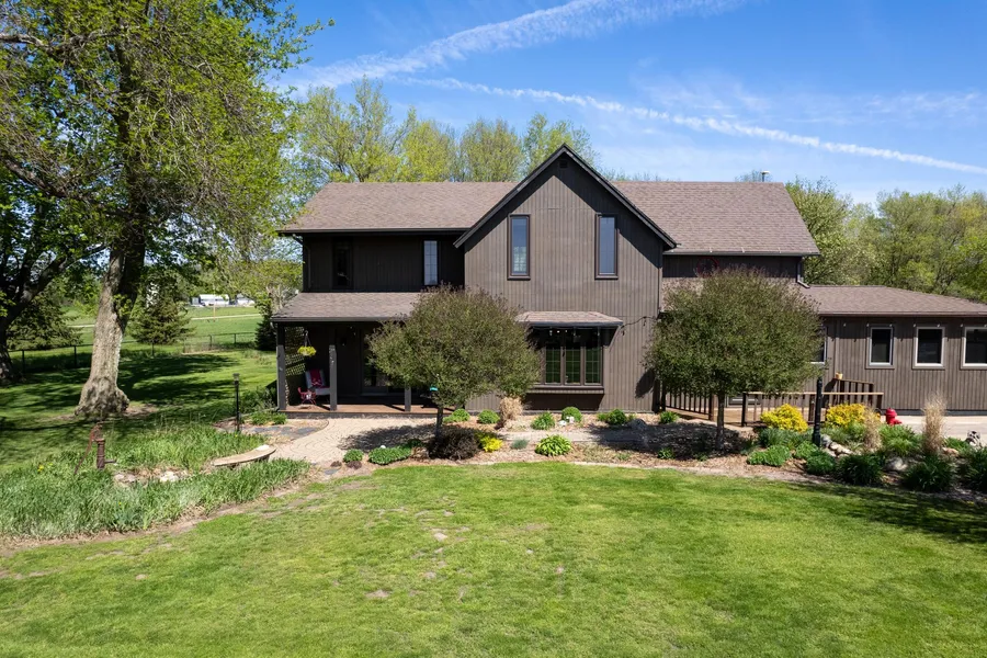 Gorgeous 9.21-acre estate, with an expansive 2-story Modern Farmhouse that offers 3 bedrooms, a welcoming living space, a country kitchen seamlessly connects to the dining area, the main floor boasts a versatile bedroom/office, full bath, spacious living room, and updated laundry/mudroom. Upstairs, discover a tranquil master bedroom suite alongside two additional bedrooms and another full bath with soaking tub. Equestrian enthusiasts will adore the 36' x 56' Gambrel barn, featuring an office space and half bath, complemented by a generous 36' x 56' box stall barn with rubber matted floors, seven cozy stalls, tack room, and a convenient wash bay. Also a well-appointed 60' x 80' indoor riding arena constructed in 2005. There is also an outdoor pipe-fenced riding arena and a pasture shelter. Completing this remarkable property is a detached three-stall garage, outdoor entertainment area, lush pastures, charming event spaces, manicured lawns and grounds w/perennials & garden sprinklers.