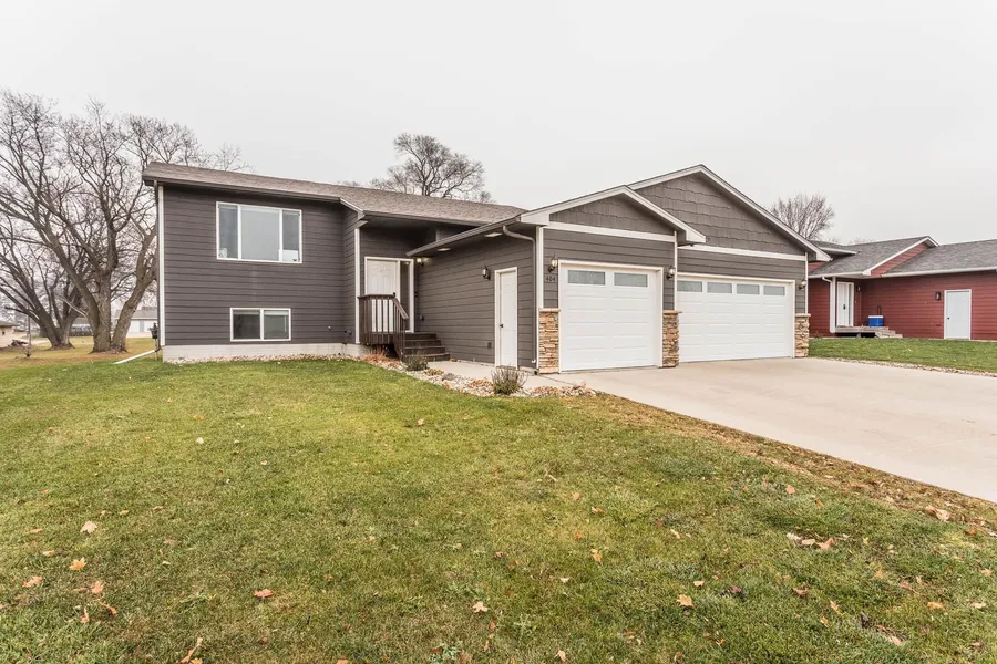 Welcome to this well-appointed 4-bed, 3-bath split foyer with a walkout lower level, set in a welcoming community just minutes from Sioux Falls. Step inside to a bright, open-concept main level with vaulted ceilings spanning the living, kitchen, and dining areas - a comfortable, natural flow that makes everyday living effortless. The kitchen offers stainless steel appliances and plenty of room to gather, while the adjoining living and dining spaces create a warm backdrop for family time or entertaining. The primary suite is a quiet retreat with its own bath and walk-in closet, and the walkout lower level adds even more space for movie nights, hobbies, or guests. Outside, the large yard provides room to play, garden, or simply unwind. With an attached, heated 3-stall garage, this home truly checks all the boxes. Come see why it might be the perfect place to start your next chapter.