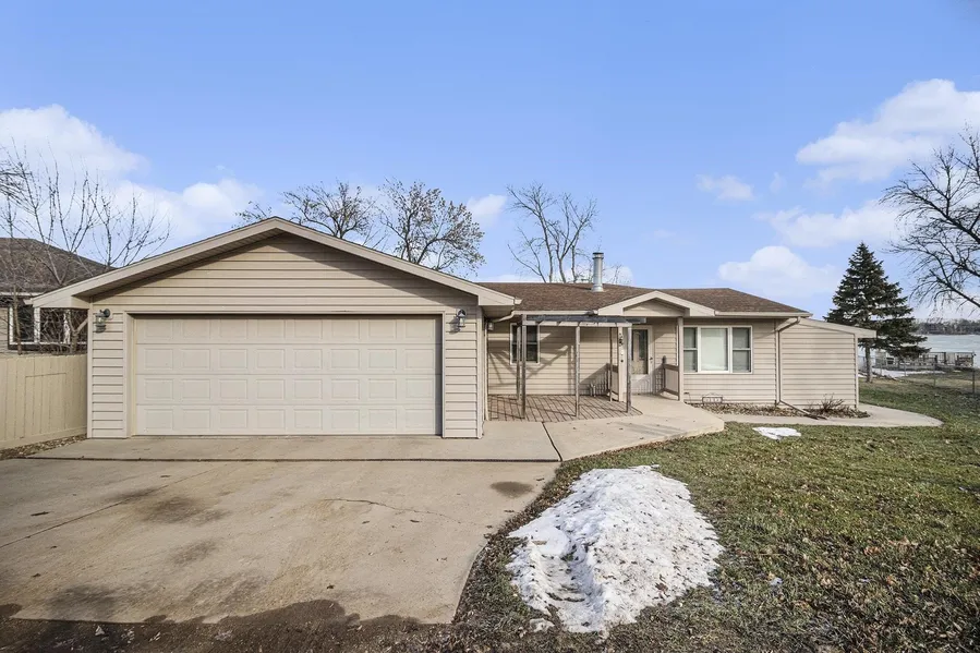 Tranquil Lakefront Living on Two Beautifully Landscaped Lots Welcome to your private lakeside retreat, where peaceful views, mature trees, and thoughtfully designed living spaces come together for exceptional year-round or seasonal living. This beautifully maintained ranch-style home offers over 1,900 finished square feet and is perfectly positioned on two manicured lakefront lots, creating a rare combination of space, privacy, and water access. Step inside to a bright and inviting living room highlighted by vaulted ceilings and a cozy gas fireplace-the perfect place to relax after a day on the lake. The open kitchen is ideal for both everyday living and entertaining, featuring a large center island, walk-in pantry, and a sliding glass door that leads directly to the deck for effortless indoor-outdoor flow. Enjoy peaceful mornings and evening breezes in the sun-filled 3-season room, or step out onto the low-maintenance TREX deck to take in the lake views and surrounding greenery. The outdoor spaces are designed for relaxation and entertaining alike, with a paver patio and firepit area that's perfect for gathering with friends and family. The home offers two spacious bedrooms and three full bathrooms, providing comfort and privacy for owners and guests. The primary suite serves as a private retreat with its own outdoor access-an ideal spot to start or end your day surrounded by nature. A standout feature of the property is the impressive 24' x 48' detached garage with a heated and cooled workshop, perfect for hobbies, storage, or lake toys. A separate storage shed adds even more space for equipment and outdoor gear. The chain-link fenced yard and mature landscaping enhance both usability and curb appeal. Whether you're searching for a full-time residence or a peaceful weekend escape, this lakefront property offers the lifestyle you've been dreaming of-quiet mornings, beautiful sunsets, and endless opportunities to enjoy the outdoors. Schedule your private showing today and experience lake living at its finest.