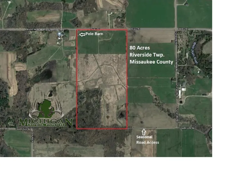 80 Acres in Missaukee County! Located between Vandermullen & Turnerville Road, this property consists of approximately 20 acres of agricultural land along Brinks Road and another 60 acres of wooded recreational land! There are several blinds already in place and there is also access on the southern border by a seasonal road! The property is adjacent to the Osceola-Missaukee Grasslands State Game Area for hundreds more acres of recreational enjoyment if desired! The property also includes a 24x32 pole barn off of Brinks Road with power & an insulated living area with electric baseboard heat as an added bonus! The 60 acres of recreational wooded land is in the Federal Wetland Reserve Program. Please contact Brandon Podolak at 989-251-9060 for a private tour today!