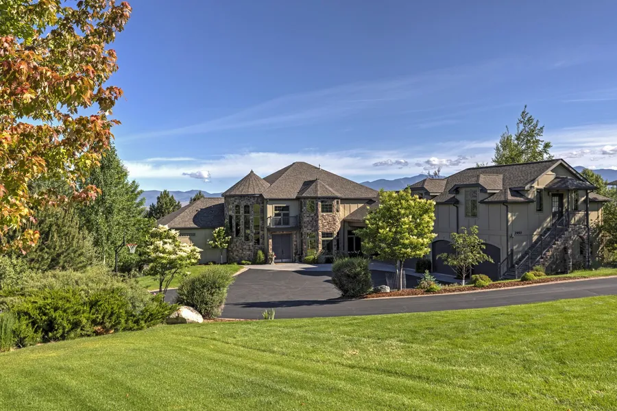 This Exquisite 6 bed, 4 bath French country inspired home will simply take your breath away. Tucked in a quiet Missoula neighborhood with sweeping mountain views, luscious mature landscaping and over 8,700 sq.ft. of living space, all your needs can be met in this one beautiful place. Whether it is the gourmet kitchen you are looking for with high end appliances, endless storage, multiple sinks, butlers pantry, warming oven, and fine china dishwasher, the home gym including infrared sauna, or the outdoor hot tub/swim spa - this home has it all. The main floor primary bedroom is gorgeous and includes a hand built fireplace, dual closets, spacious ensuite with a large jetted tub and walk in shower, it even has a private balcony.