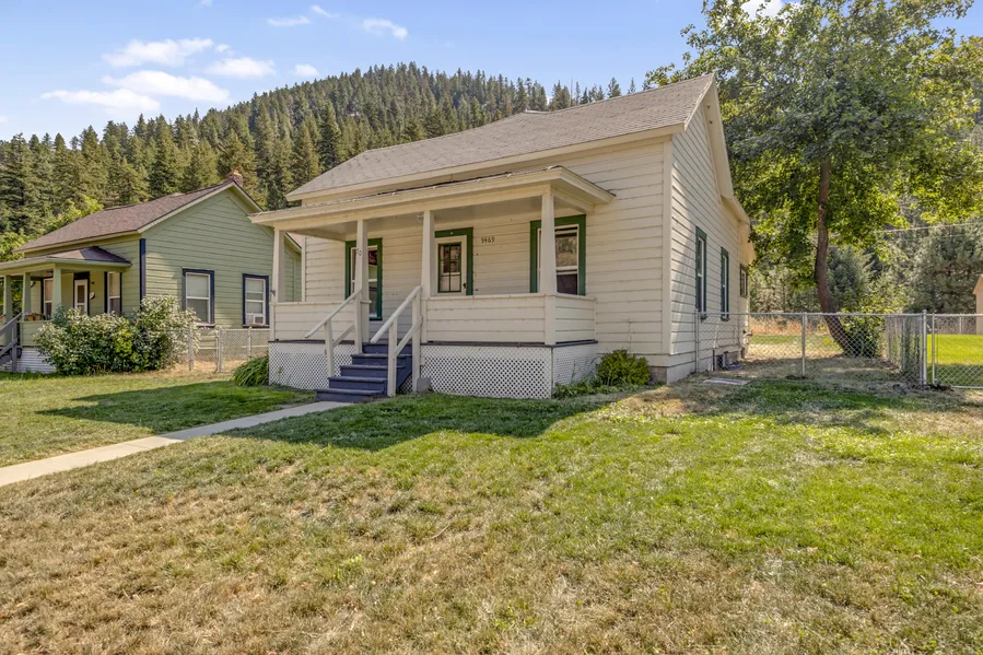 East side of the road facing a beautiful mountain side. This 3 bed with main floor 2 bedrooms open to the large living area with new solid surface flooring and large bright windows. Walk in to the freshly painted kitchen with newer appliances. Downstairs is the mechanical with newer forced air furnace and water heater, with tall ceilings and an abundance of storage. There is some original hardwood flooring underneath, also a large back room that could serve as storage, mudroom and has laundry. Upstairs is large loft bedroom with several built-ins plus additional living space. Newer shed in back on .18 acre lot and plenty of parking in back. Fenced, with newer shared septic systems.