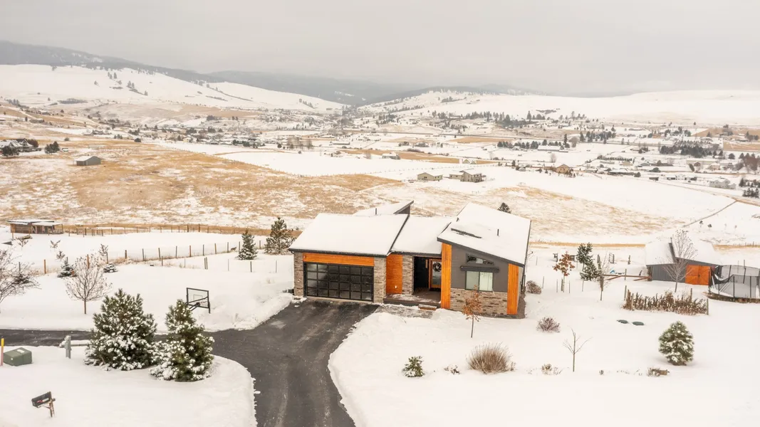This extraordinarily magnificent home provides space and luxury for the most particular of buyers. The exterior boasts hardieboard siding with accents of lap style wood and stack rock giving it a modern polished appeal. Driving up to the property note the horseshoe style drive through providing ample parking for guests, and the generously sized garage with frosted panels to add to the wow factor of this homes exterior. The back deck with the propane gas fireplace and glass surround feels as though youre at a resort with privacy abound. The home sits on a gentle slope maximizing breathtaking views of the the Wye valley. Fenced in areas for animals including a large barn that ties in perfectly with the aesthetics of the home but not impeding on your view. The lower covered patio is preplumbed for a hot tub also taking advantage of privacy and sweeping views. Several raised beds for flowers or veggies plus fire pit area take advantage of outdoor living in Montana Entering in the front door, the bench area offers space for jackets, hats, boots and all accessories to neatly tuck away. Bedroom one faces towards the front of the house with large windows letting in ample light. Across from this bedroom is the laundry room with tile flooring and additional space for mudroom attire and a utility sink. Back towards the front door and facing the hall the breathtaking open area is more than ideal for entertaining and hosting. The large kitchen island with quartz top has a built in microwave, dishwasher and sink. Great work space and plenty of seating around the island. White shaker style cabinets, subway tile backsplash with tasteful finishes plus stainless steel appliances complete this gourmet kitchen. In the dining and living area featuring hand scraped hardwood floors, wood beam accents, large expansive windows, plus beautiful marble slab surround propane fireplace. There is a main floor bath with double marble topped sinks and tiled shower for guests. The primary suite is off the kitchen area with access to the deck. The primary bath is a an oversized double sink with walk in closet, the true crown jewel is the rain head open fully tiled shower with glass surround. Heading to the downstairs it opens to the additional living room with built-in wet bar, wine fridge, and coffee station. The stained concrete floors offer low maintenance and continue the modern feel. The downstairs fireplace also has marble slab surround and a contemporary fireplace feel, this area also accesses the covered patio. Bedroom three has a slider to the outside patio, a walk in closet and its own bathroom suite. Bedroom four also has access to the patio are and the bathroom with tub surround is just outside the bedroom door. At almost 3300 sq feet this home is ideal for a buyer looking for privacy, space, views, and polished finishes. Please contact Annelise Hedahl at 406-546-6979 or your real estate professional for more information on this superb home.