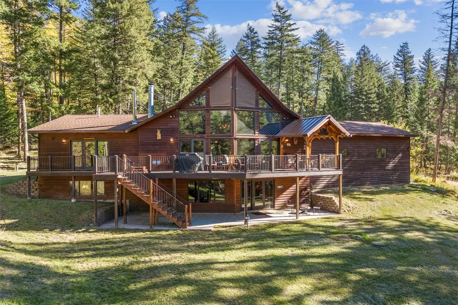 Situated above the bank of the Blackfoot River, this enchanting 4-bedroom residence is a dream come true. Nestled on 6.4 private acres and adjacent to over 500 acres of protected wilderness, this retreat offers the perfect blend of seclusion, comfort, and outdoor adventure. The home is well designed with expansive windows, vaulted ceilings, main floor primary suite, open concept great room, chef's kitchen, large dining area, wood burning fireplace, hardwood floors, T&G ceilings, large loft area, guest bedroom and two full baths. The lower level is a welcoming place to gather in the game room with custom made entertaining bar, wood burning stove, 2 large guest bedrooms, full bath and ample storage. Towering trees, abundant wildlife, blue ribbon trout fishing and endless adventures are just outside your door. The gated community provides security and safety and the location is paramount as Missoula just minutes away.