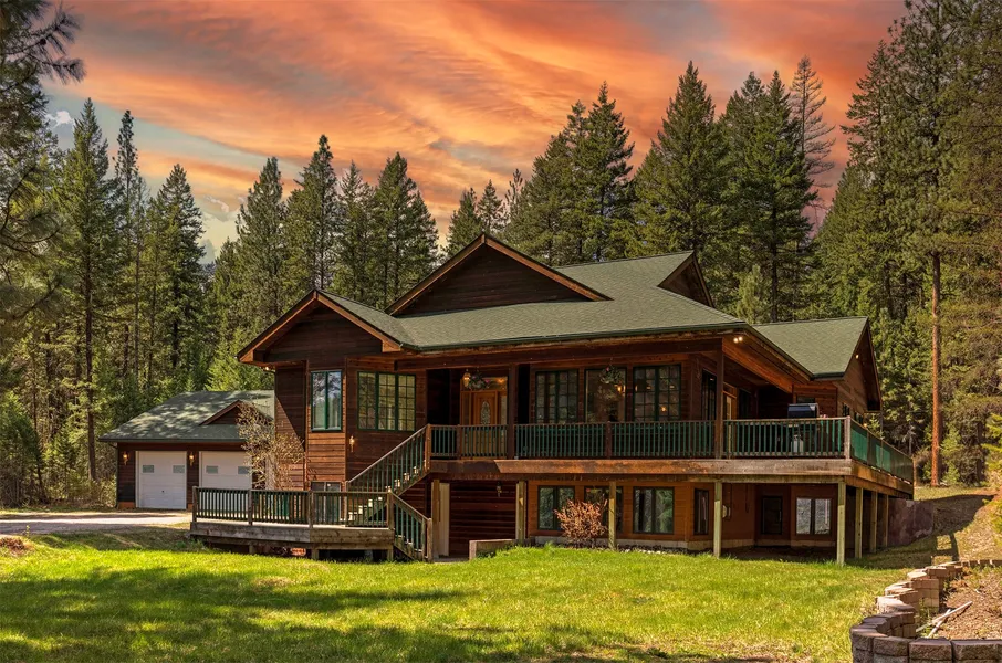Nestled amidst the picturesque landscapes of Frenchtown, Montana, is this stunning 4,000 square foot, 5 bedroom, 3 bath home that exudes rustic charm and elegance. Situated on sprawling 5+ acres, it boasts a serene ambiance, offering a perfect blend of natural beauty and refined living. As you approach the residence, you're greeted by the warmth of wood siding that seamlessly integrates with the surrounding wilderness that you can look out into from the expansive wrap-around porch. Step through the front door into a world of openness and light. The heart of this home is its expansive open floor plan, with oak floors throughout, where the living room, dining area, and kitchen flow effortlessly together. Sunlight pours in through large windows, bathing the space in natural radiance. Attached is an extra-large garage with plenty of storage space, and out your back door is endless hiking, ri...