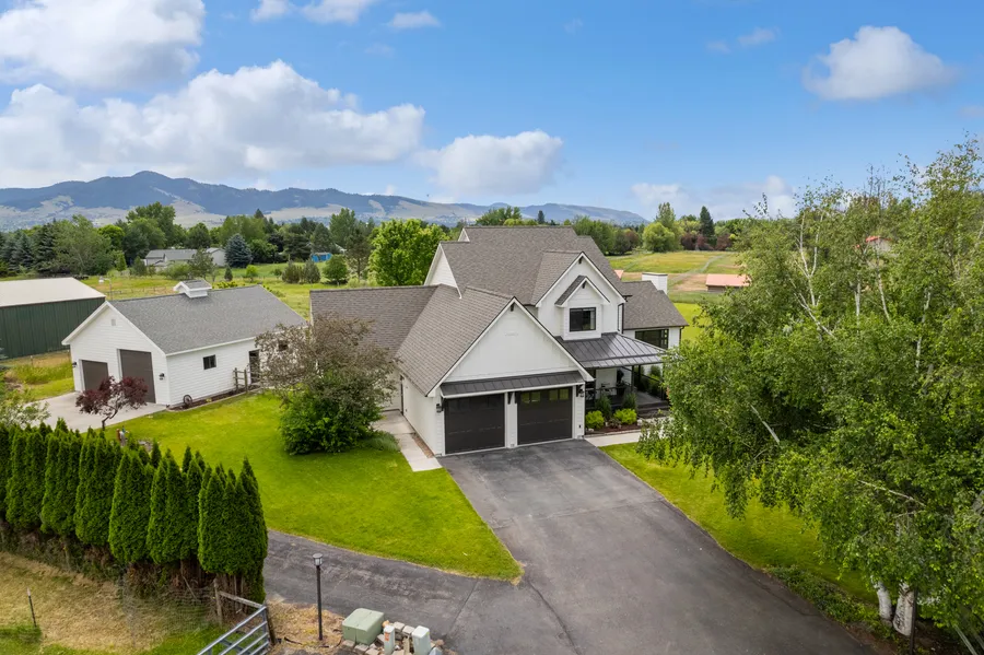 It's the offering you've been waiting for: Better than new, fully remodeled home, large heated shop, landscaping, views, and at end of a quiet lane on almost an acre in Target Range. All of this plus 4,652 sq ft of luxurious living space, and a sprawling, private back yard. Step inside and be amazed by the beautiful top to bottom floor remodel that started in 2020 on this timeless home. Indulge your inner chef in the state-of-the-art kitchen, equipped with top-of-the-line appliances and quartz countertops, a breakfast nook, and a double sided wine cooler accented with rustic beams. Enjoy the new (in 2020) black framed Marvin Windows that frame the gorgeous views from every vantage. The deluxe remodel also included new flooring, paint, trim and 2 primary en suites with tiled walk-in showers, and radiant floor heat. Every aspect of this home exudes classic sophistication. The local craftsman-designed stair railings and mantel over the floor to ceiling field stone fireplace add a touch of artisanal. There is private access to the lower level, perfect for a home office or guest suite. Added insulation ensures energy efficiency all year round. The exterior has also received a facelift with fresh paint in 2021, new doors, gutters, lighting, front porch, well pump and a roof with 50 year architectural shingles. On the newer back yard deck you will take in the picturesque views of Lolo Peak, the "M" or the "L". Enjoy fresh fruit from your own flourishing orchard with multiple varieties of trees. But it gets better! There is also a large HEATED SHOP, with storage. Don't miss out on this incredible opportunity to own a meticulously updated Target Range home. Contact MerriLee Valentine at 406-370-4984 or your Real Estate professional.