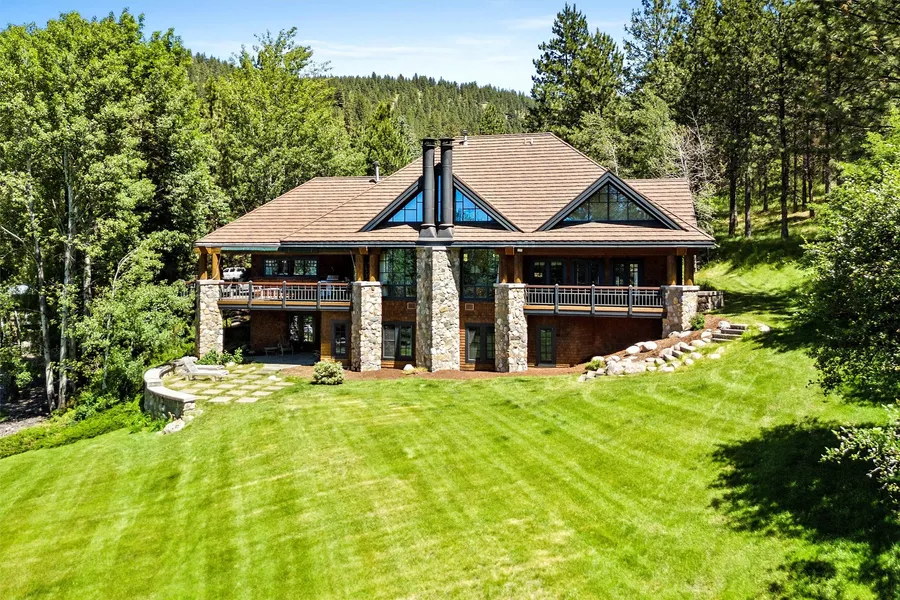 A rare offering in one of Missoula's most sought after neighborhoods. A custom built home, this timeless classic offers stunning views from every room, and architectural beauty at every corner. Opening with an expansive great room to capture the surrounding beauty, no detail was missed with the design and quality of this home. The open airy floor plan features extraordinary beam work, tying in rustic Montana touches with modern elegance of marble and stone. The dining opens onto an ample covered deck to soak up the view of the rolling lawns and surrounding trees and with privacy in mind includes an additional building lot as a buffer. The grounds back up to public lands ensuring endless recreation and privacy while this small neighborhood shares private amenities such as a pool and tennis courts. An impressive primary suite sits on the main floor, incredible private office space upstairs and 2 guest suites down with an informal rec room.