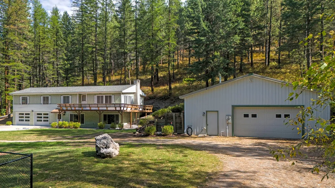 Whether you're tuning your gear after a day of powder, jamming with friends, or crafting your next project, this room is ready to match your passions. Upstairs, natural light pours into every corner of the home, thanks to generous windows in the secondary living space. Curl up with a good book or simply sit back and take in the views of the surrounding landscapes. Three beautifully appointed bedrooms, two baths, and a convenient laundry room, dining room, and full kitchen complete this level, offering you and your guests a peaceful retreat. Outside the dining area, through French doors with a fixed panel, is a spacious wrap-around deck, perfect for enjoying the outdoors. Just beyond, a large powered and heated shop offers ample space for storing all your recreational gear or setting up the ideal workshop. Surrounded by trees, both the home and shop are nestled in a peaceful, serene setting. With its proximity to Snow Bowl Ski Resort, this home is a dream for those who love the outdoors. Whether you're seeking a year-round residence, a seasonal getaway, or exploring the homes potential, this dynamic home offers endless possibilities in the heart of Grant Creek living (with no known covenants). Every adventure Missoula offers, from skiing to downtown dining, is just minutes away, making this property an exceptional find. The property borders private and public land including but not limited to Lolo National Forest and Rattlesnake National Recreation Area (per the FS USDA GOV website). Sellers had a new well installed in late 2022, shop is approx. 50+/- x 30+/-, shed is approx. 8x16.