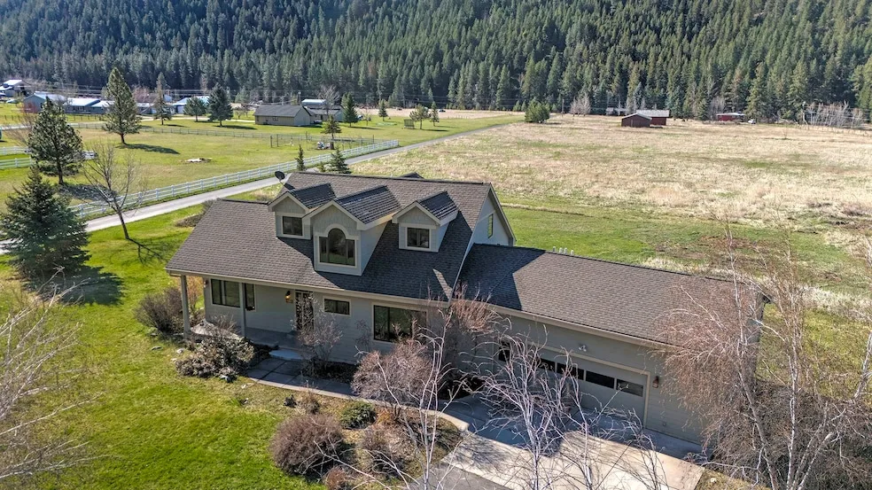Upper Miller Creek, a gem of the Missoula Valley, is a place where stunning mountain views, access to open space trails, and a little elbow room between properties combine with easy, paved access to Missoula's main commercial corridors. With just over 2.5 acres of level ground, this property is the perfect place for raising a few animals or planting a large garden. Of course, just enjoying the privacy and the wildlife is also a perfect use of this beautiful spot. The well-designed home offers an airy entry open to the spacious living room. With windows on three sides, this room is light-filled much of the day and captures all of the views of the valley. The open kitchen and dining area are large enough to never feel crowded, and designed for optimum work-flow. Sliding doors to the south-facing back patio and property beyond make the living space feel even larger. The primary bedroom suit...