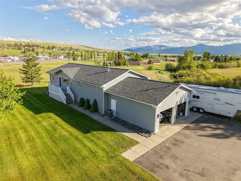 Welcome to 12088 O Keefe Creek Blvd your Montana retreat just 10 minutes from Missoula. This spacious 5-bed, 3-bath home sits on 4.26 acres with O Keefe Creek running through the property and stunning views of Snowbowl and Blue Mountain. Enjoy 3,192 sq ft of well-designed living space, including a main-level primary suite, two additional bedrooms, and French doors leading to a walk-out patio. The fully finished basement offers two more bedrooms, a bath, and a cozy gas fireplace with its own walk-out patio. Recent upgrades include a new roof and gutters (2023) and a new furnace and A/C (2021). The property is near final plat approval through Eli & Associates for lot completion to split the lot, with an approved private access point off the highway in place. With easy access to I-90 and Hwy 93, this location blends privacy, scenery, and convenience ideal for those who want country living close to town.