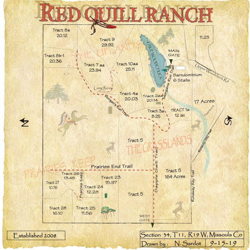 Go 1.5 miles to entrance of Red Quill Ranch.