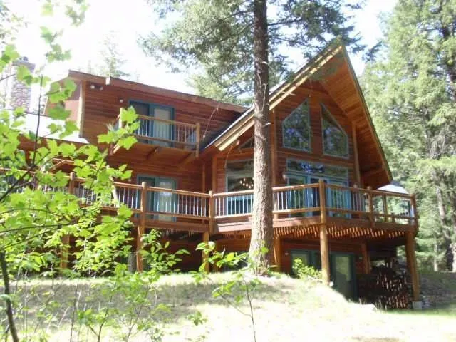 Montana Riverfront Property for Sale. Well-appointed, custom log home located in a secure area on the Blackfoot River with phenomenal river frontage. 760+ feet of level access to the river made famous in John McLean's "A River Runs Through It". Close to Missoula for convenience, yet wildlife still abounds. Home has over 4500 finished sq. ft. Main level consists of an open kitchen/dining & great room with cathedral ceilings, river rock fireplace, wood flooring, gorgeous antler chandelier & French doors leading to the deck overlooking the river. Main level has a guest room with deck, full bathroom, & spacious master suite. Master suite has its own rock fireplace, walk-in closet & private bath. Upper level features guest room, full bathroom & office area. Inviting lower level living quarters is useful with 2 bedrooms, full bath, utility room, kitchen & large family/game room with fireplace & walk out access to the river. Can easily accommodate 2 families. Included is 3 stall garage/shop with 14" door & another 2 car garage.