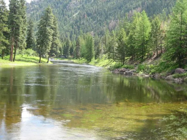 Salmon Run Lot 2 at Big Waters Ranch offers many tremendous features. Scenic park-like areas along the Clearwater River as it flows out of Salmon Lake. The fishing for large rainbows, cutthroats and browns is best along this stretch. Salmon Run sports around 1600 feet of deep pools, tides and ripples for the fishing enthusiast. Build your retreat on the calming river and watch eagles, osprey, whitetail deer, elk and all the wildlife you can imagine.