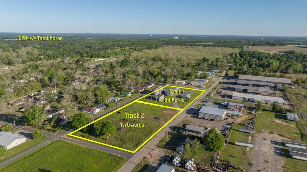 The Weeks Group proudly presents an exceptional commercial investment opportunity. Situated on a total of approximately 3.29+/- acres of prime commercial acreage, this property offers prime potential for development. Featuring a variety of structures, including a 2,400+/- square foot enclosed metal building with roll-up doors and a loading ramp, a 700+/- square foot enclosed block building with canopy, and a 20 x 40 open metal building boasting 16 feet of clearance, the possibilities are endless. Additionally, the property includes a 400+/- square foot heated and cooled office space, as well as large grain bins for agricultural storage. Offered divided and as a whole, buyers can take advantage of multiple tracts selling at auction.