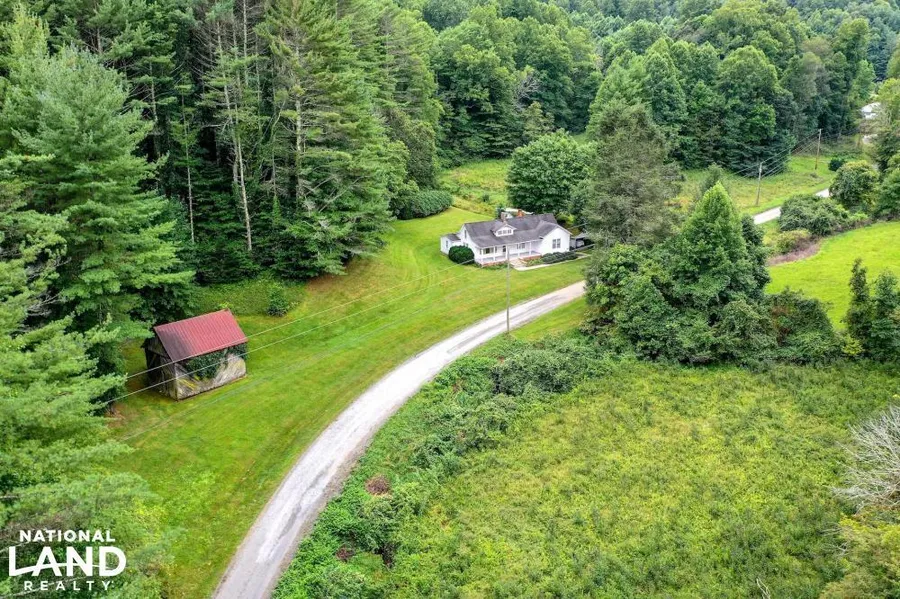Homesteader paradise with a creekfront farmhouse on 27 +/- unrestricted acres. Three open pasture/garden areas and a large yard currently provide acres of open space. Four outbuildings including a modern 19x21 detached garage and an 18x24 barn the prior owner advised is chestnut. Multiple creeks and springs, woodlands, and several other gentle building sites provide bountiful resources and future options. The 3 bed, 1 bath house needs updating but has the charm of a classic Appalachian farm. Home has been vacant for many years, but utilities remained on. Total Heated Living Area is 857 sqft, but footprint is 1576 sqft. Dining and Kitchen (438 sqft) have 6'10" ceilings so do not qualify, and one bedroom is accessed off of that area so none are included as Heated Living Area. Spring has UV and sediment filters in place. The seller has not lived in the property, will not make any repairs prior to closing, inspections and survey are highly encouraged.