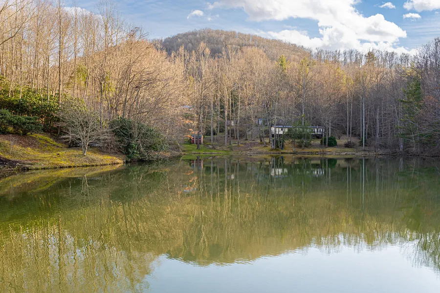 Private, mountain oasis set on nearly 3.5 acres with a large, private lake. Welcome to 428 Hoot Owl Road. This home, located just minutes from both Spruce Pine and Burnsville, sits on a gently sloping lot that includes mature trees, bubbling streams, and a lake. The residence features a welcoming, split bedroom floorplan providing great common space and outdoor living. The home features a large living room, spacious kitchen with breakfast area, primary suite on the main that includes double vanities, walk-in closet, and walk-in tile shower, two guest bedrooms, a full bath, and a bright and airy sunroom with woodstove. Just off the back of the residence is a large open air deck that spans the length of the home. Recent updates include a new roof and fresh paint. Owner financing available.