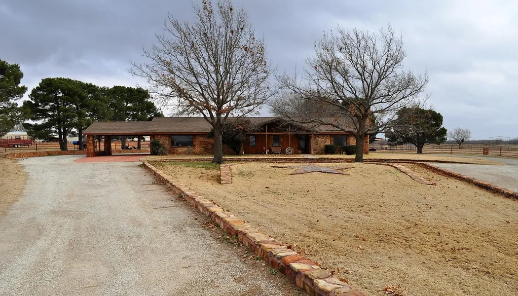 Amazing country home with tons to offer on 20+ acres. This ranch style home has been updated throughout, with custom lighting, new windows, crown molding, plantation shutters, Aspen wood walls, gorgeous cabinets and counters in kitchen. Nice open floor plan with custom ceilings in the living/dining areas, game room and sun room. The master suite has 2 separate closets and the bathroom is a beautiful oasis with walk-in tiled shower and Jacuzzi tub. Outside you will find impeccable landscaping with sprinkler system, fully paved circle driveway, immaculate barns and arena area and beautiful mature trees surrounding the property. This property is an absolute showplace of a dream home and a must see. Qualified buyers only. Arena chute, walker and portable stalls under the north awning of the barn are not included with sale. Call our office to schedule an appointment today! 325.235.1522