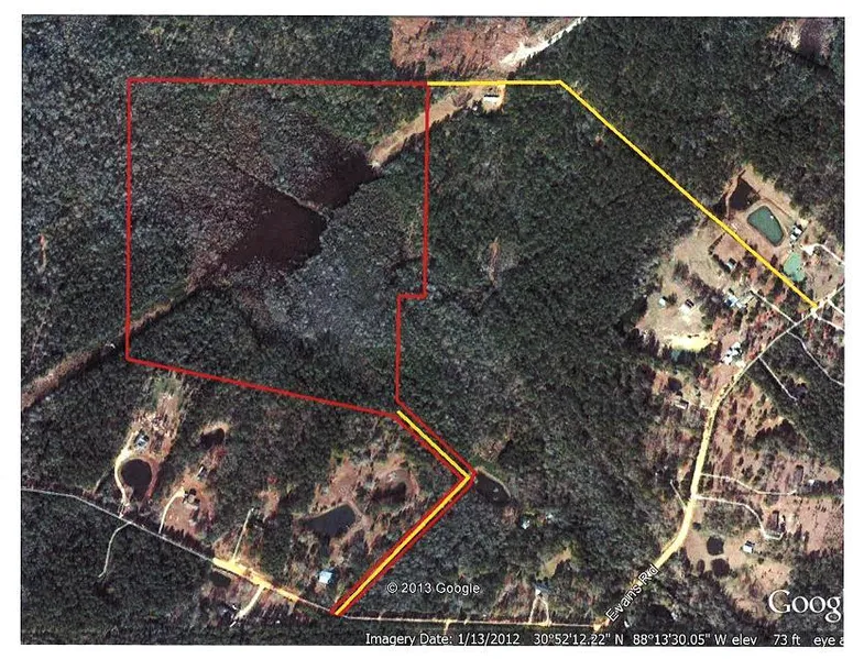 Research Parcel InformationFrom Mobile, Alabama, go North on Hwy 45 for about 12 miles. Then turn West on Arden Road. Continue for about 1 mile then turn left onto Evans Road. Go approx 1/2 mile and the property is on the right behind the houses.