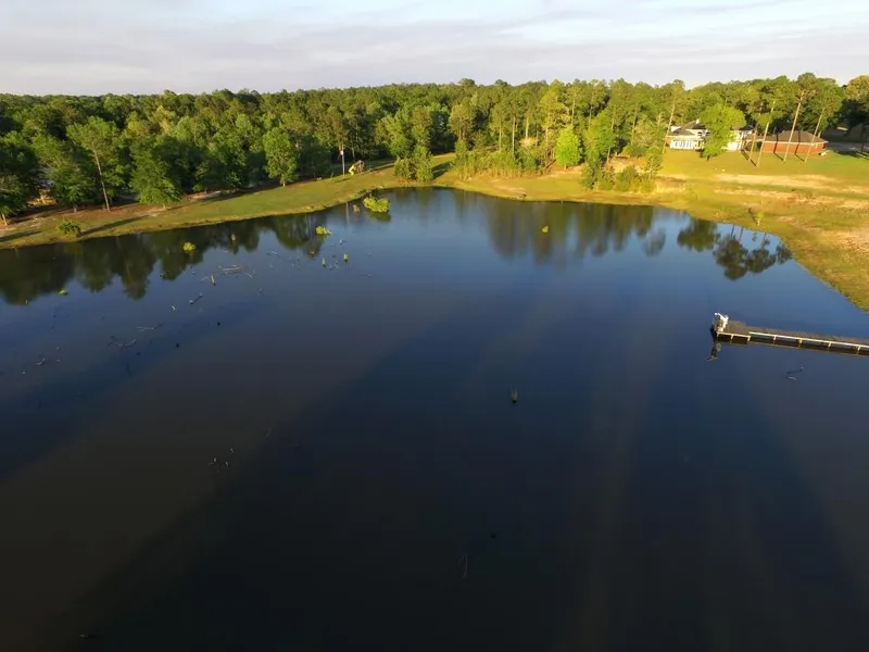 This immaculate estate epitomizes country living with city convenience. Both the main home and the 2 bed, 2 bath guest house overlook the 23+ acre trophy fishing lake, which provides panoramic sunset views. The brick 5 bed, 4.5 bath main home was built in 2004, has beautiful tile and hardwood floors throughout, chef's kitchen, trophy room with walk in gun vault, custom made railing, and a large master suite with fireplace, balcony, walk through shower, and an enormous closet. Along with great fishing, enjoy hunting trophy deer, turkey, dove, ducks, quail, and the occasional wild hog. The owner has run a large number of cattle on the property through the years, aided by an immense amount of perimiter fencing and cross fencing, along with improved and fertilized pasture. Other amenities include a 100x140ft enclosed barn with 2 shed wings, cross fenced horse pasture, horse barn with stalls,...
