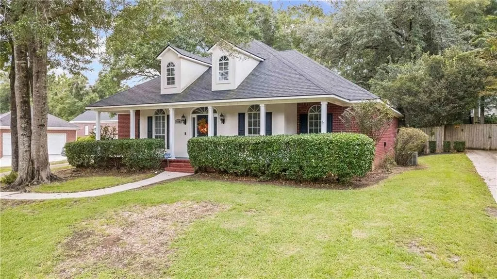 Welcome home to Oakbriar, one of West Mobile's most sought after neighborhoods! Tucked away just off Sollie Road, this spacious 4-bedroom, 2.5-bath home features an inviting foyer with hardwood flooring and freshly painted interior in soft, neutral tones. The great room boasts a tray ceiling and gorgeous gas log fireplace, creating a beautiful sense of space and style. You'll find new flooring throughout the living areas of the home and the interior has been freshly painted in neutral colors! The kitchen features granite countertops and a breakfast nook. Work from home or enjoy quiet moments in the dedicated office overlooking the peaceful, privacy-fenced backyard. Enjoy outdoor living on the charming covered patio or relax on the welcoming front porch. The attached garage adds convenience & comfort, and the new Fortified Roof (2024) offers peace of mind. Seller is offering a home warranty with accepted offer. With its serene setting and unbeatable location, just minutes from schools, shopping, and dining, this home feels like a world away while keeping you close to everything. It is a great blend of functionality with style mixed with southern charm. Schedule your showing today! All measurements are approximate and not guaranteed, buyer to verify. Buyer to verify all information during due diligence.