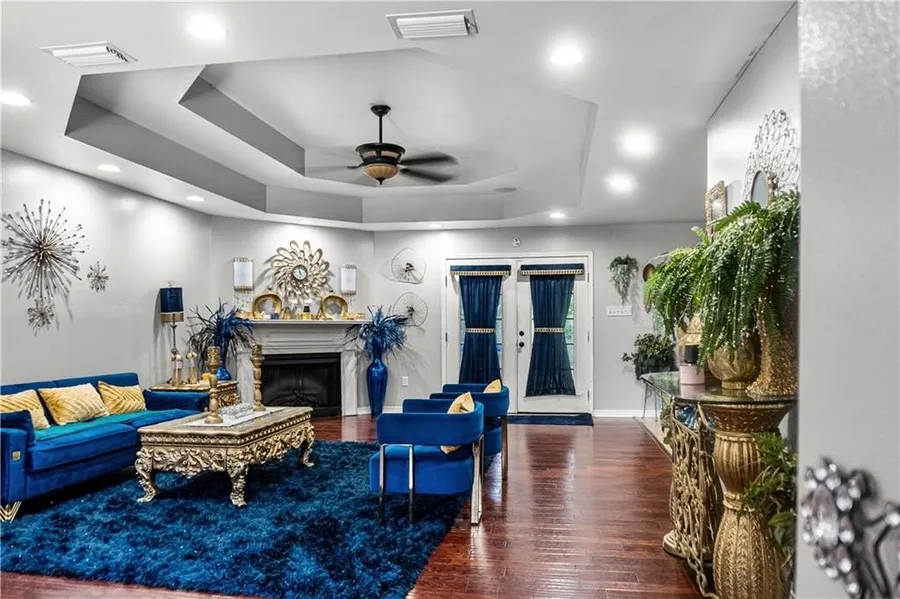 SENSATIONAL HOME! With nearly 2,400 square feet of living space, this 4 bedroom, 2 bathroom home is ready for its next owners. Upon entry, buyers will notice beautiful hardwood floors in the family room leading to double French doors to the deck. A fireplace and tray ceilings add to the ambiance of the main living area, perfect for entertaining. The kitchen is generous in size with a large dining area as well as a bar for additional dining space. The master bedroom with tray ceilings is large enough for a sitting area and has new flooring. The master bathroom features his and her sinks with a large garden tub as the focal point. Three nicely sized additional bedrooms are on the opposite side of the home, with a hall bathroom. One of the bedrooms is currently used as an exercise room. The laundry room is sleek with new floors and leads to the enclosed garage attached. A huge fenced in back yard is perfect for outdoor entertainment and activities.