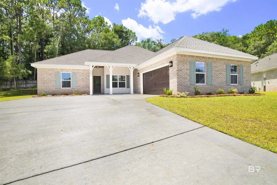 NEW CONSTRUCTION. Welcome to 5537 Cross Creek Dr, a GOLD FORTIFIED home where timeless craftsmanship meets modern comfort in the heart of Mobile. Designed by Prime Design Homes and part of the Transitional Curated Collection, this single-story Jameson floor plan offers 2,245 square feet of thoughtfully designed living space. As you step inside the foyer, you are greeted by an open-concept layout that flows seamlessly into the living area, anchored by a gas fireplace with granite surround. To your right is the formal dining area with a 6-light aged brass chandelier, while to your left, the guest bedroom and primary suite await. Sunlight fills the home, highlighting the layered textures and warm finishes throughout. The designer kitchen is the centerpiece, featuring white cabinetry, bold navy island and vent hood, granite countertops, 3x8 subway tile backsplash, pendant lighting, and champagne bronze Delta fixtures. A butler's pantry with a mini fridge and sink adds functional luxury, while the mudroom and laundry room with wash tub offer everyday convenience. Walking down the hall, you'll find two additional bedrooms and a full bath with 12x24 tile, tub/shower combo, and Delta fixtures. The primary suite is a serene retreat, with a spa-like bath featuring dual vanities, a soaking tub, and walk-in tiled shower with champagne bronze finishes. Step outside to the covered porch with v-groove ceiling, ideal for morning coffee or evening entertaining. Smart Home Package included. Smart LED lighting, Ring Doorbell Plus, Ecobee Smart Thermostat, Amazon Echo Hub, and Kwikset Z-wave electronic deadbolt. This GOLD FORTIFIED home offers a seamless blend of classic detail, modern elegance, and thoughtful design; a must-see from Prime Design Homes! Buyer to verify all information during due diligence.