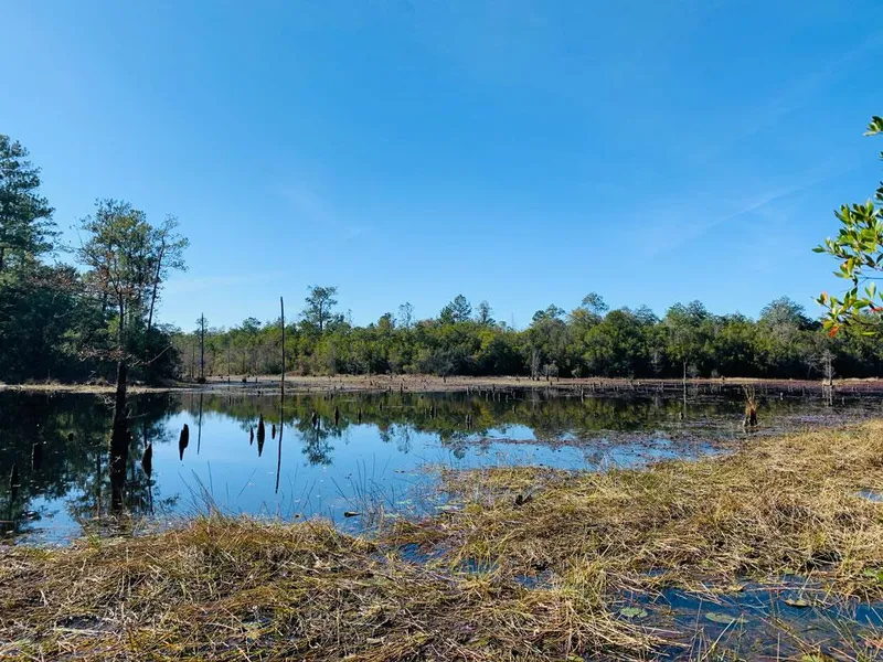 This 359+/- acre tract is a secluded getaway located very close to Mobile and Saraland, with a large lake site and a beautiful creek! The eastern border of the property features 5,800 +/- feet along scenic Williams Creek. This clear running stream is deep enough for fishing and your own swimming hole, plus it has numerous white sand bars along its course. The property is also the site of Haas Lake, a former lake site that has potential to be reestablished. Deer, Turkey, and other game are plentiful. An interior road system and elevated road bed remains from past logging, hunting, and recreational use. Nearly 200 acres have more than 20 years of growth including the mature timber along the streamside management zone along Williams Creek. Approximately 160 acres of timber was cut in 2013 and is in the early stages of natural regeneration. The terrain varies from elevations as high as 150 f...