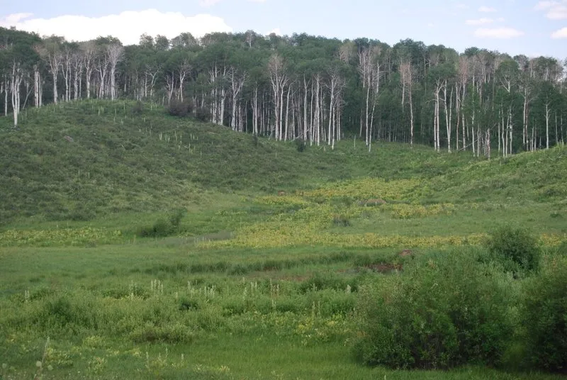 Buyer Represented! Aspen Meadows Ranch spans 296 acres, offering a blank canvas for a recreational paradise. The property boasts lush meadows, vibrant aspens, scattered pines, and several serene ponds, with a creek meandering through the land. Perfect for outdoor enthusiasts, the ranch provides abundant hunting opportunities, featuring hunting blinds and direct access to the bordering National Forest, enhancing the area's wildlife experience.