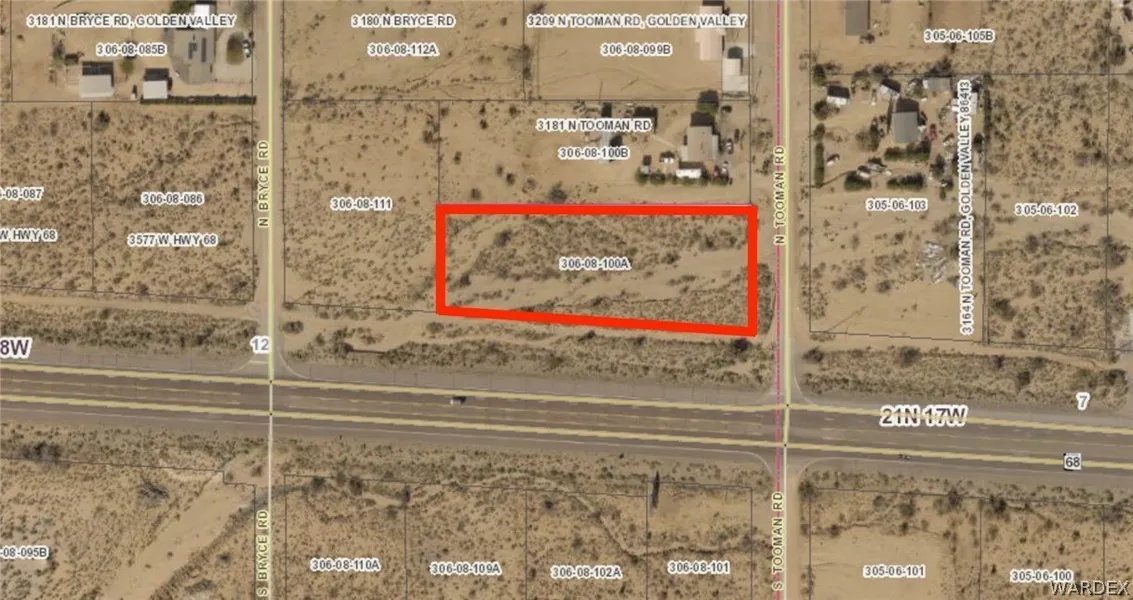 1.36 acres on High way 68 in Golden Valley. 400 feet frontage facing HWY 68. Great place to start a business. Corner lot of HWY 68 and Tooman Rd.