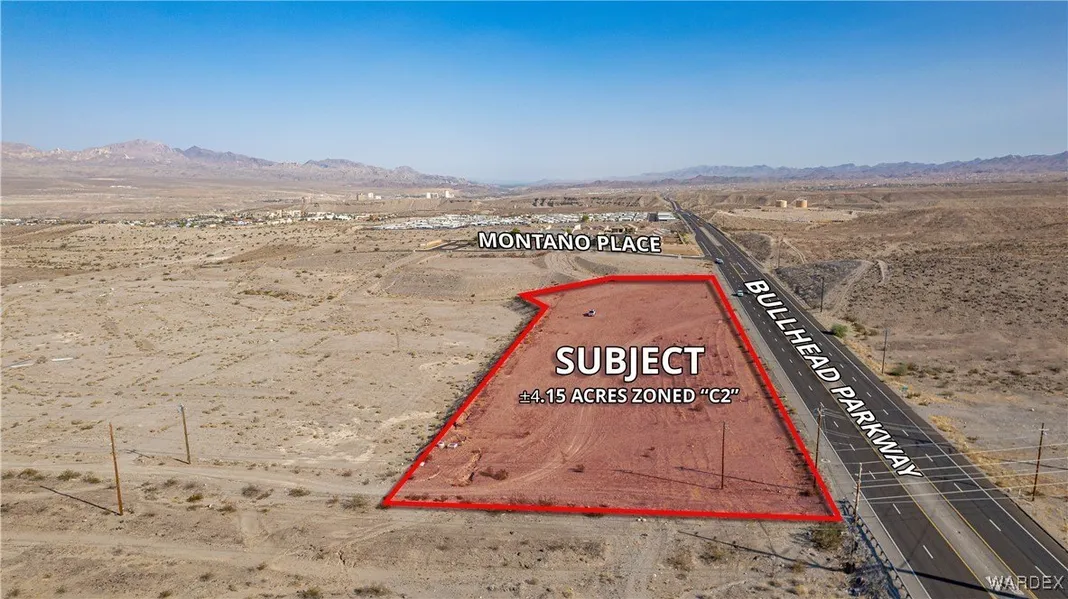 Just over 4 Acres of Commercial (C2) property on the Bullhead Parkway. The Bullhead Parkway is a high traffic corridor between Laughlin Nevada and Bullhead City. The subject parcel is located near Laredo Village and Montano Place Subdivisions. The surrounding property to the west is currently Zoned R1L for single family homes. Rough grading has been completed on the parcel and is nearly level to the parkway. Preliminary development shows additional access via Montano Place. Commercial parcel 230-03-003 is currently available separately.