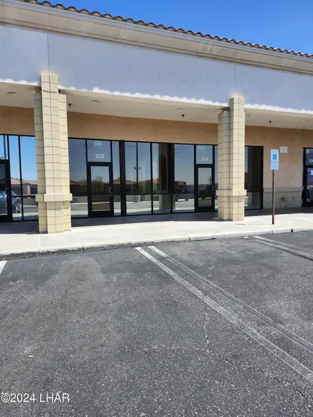 Basha's Shopping Center right off Hwy 95-South Side! High traffic area. This unit is adjoined with another unit and together they make unit 104-102. Open space, tile floor and 2 restrooms with private office space in back. Nice tall pillar shape arches accent the middle of room.