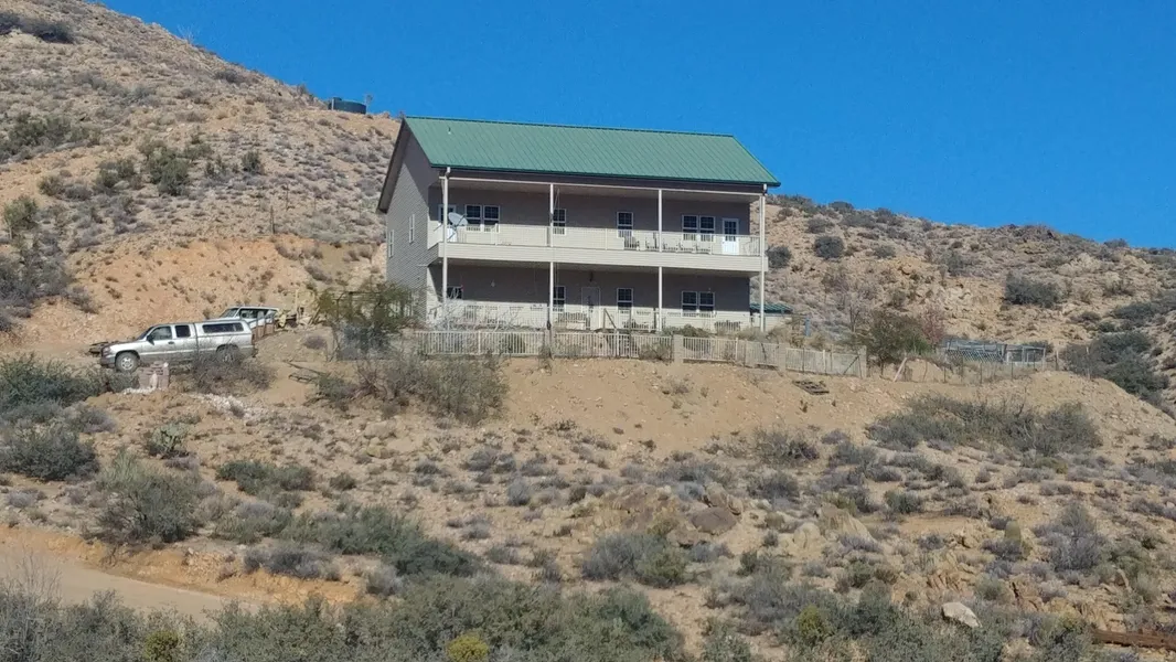 6095 S Round Turn Drive. Live the Western life in Style!! Motivated Owners May Carry! A very nice two-story, 5-bedroom home for sale on 40 acres in Windmill Ranch east of Kingman. An easy drive to the city from your own country spread. Solidly built home - red iron steel structure and steel framing studs on the interior. The home has either 5 bedrooms or 3 bedrooms and an office and a craft/sewing/hobby room. You decide. Two of the upstairs rooms open onto the covered balcony. From there you can see the beautiful rolling hills of Windmill Ranch. There's plenty of room upstairs to build more bedrooms and another bathroom. The Master bedroom is on the ground floor, with a large walk-in closet/storage area. The Master bathroom has a large, deep, triangular tub and separate shower w/hand grips. The on-demand propane water heater quickly provides hot water for soaking after a long day. The kitchen island has a granite top and the counters are tile. The Refrigerator, which is included, is powered by propane, as is the oven/stove. There's also a propane heater in the kitchen, and one in the living room. Upstairs is heated by pellet stove. When needed, the home is cooled in the summer by evaporative cooler, window units, and ceiling fans. This Off-grid home is powered by 13 solar panels and propane. The Property Owners' Association maintains the roads. The private Well fills the 2,200 Gal tank on the hill behind the home, and gravity helps to bring water to the home. The garage is propane powered. And there's more! A 24' X 30' barn!! This could be a fantastic mini ranch. Many places to ride your horses; especially Arizona State Trust Land immediately to the West of the parcel. Only takes an inexpensive permit to enjoy 640 Acres.