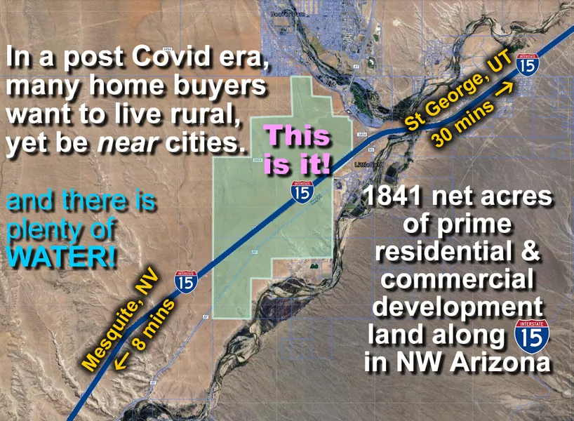 The prior owners were Real Estate Developers who carefully chose this site with the intent for it to be a future master planned residential community, principally catering to retirees and vacation or second home occupants, as well as modern families. The site is ideally suited for the continued influx from the northern states and Canada (snowbirds) desiring to winter in the south. In addition, the anticipated affordable housing within the site will be extremely attractive to workers employed in St. George, and Mesquite.