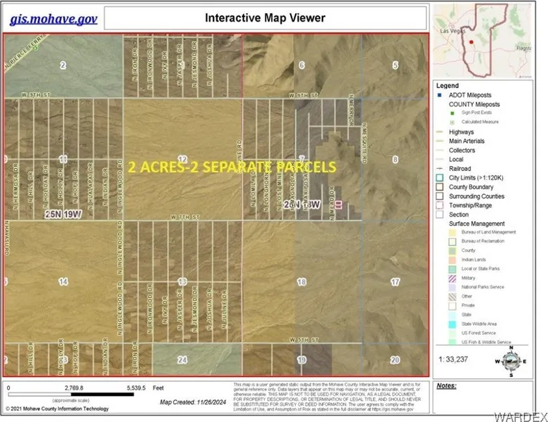 2 ACRES in DOLAN SPRINGS, AZ! This is two separate parcels of 1 acre each, off grid property offering State land to the EAST! Lots of potential to create your very own homestead, plenty of space to roam. With state land touching this parcel, it is like having an additional "playground" in your backyard. Dolan Springs AZ has the new Interstate 11 highway coming and is only a little over an hour to Las Vegas which offers all your entertainment and shopping needs. This property is awaiting your footsteps!