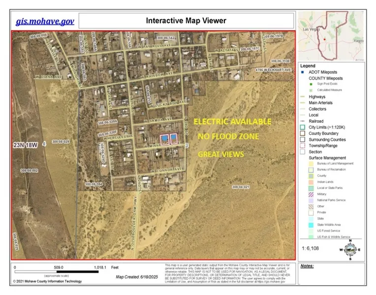 Two separate parcels located along the same street in Chloride, Arizona, totaling approximately 0.47 acres. Parcel numbers #308-06-270 and APN #308-06-272, these lots offer level terrain with accessible roads and electric available nearby. Nestled near the edge of BLM government land, the setting provides a sense of open space and privacy while still being part of the historic Chloride community. Both lots are situated in an area known for its quiet surroundings, scenic desert views, and mild elevation. No homeowner's association and no covenants/restrictions!! With low annual property taxes and no HOA, the holding costs remain minimal, making these parcels a practical option for long-term investment or future use. Chloride Water is available for connection approximately $1,250 per lot for the water meter and account set up fees- buyer can verify with the local water company for details. These lots may be what you've been waiting to become available. You can drive by and see for yourself the potential! Las Vegas is a little over an hour away for all your major shopping and entertainment and Kingman is less than 30 minutes away.