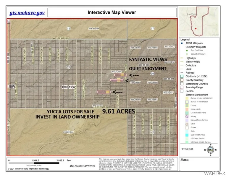 9+ ACRES!! OWN 3 LOTS-3 SEPARATE PARCELS in the Arizona Desert in YUCCA ARIZONA! OFF GRID! Looking for something off-grid, peaceful with plenty of privacy? ATTENTION SOLAR POWER ENTHUSIASTS-generate your own power on this hillside. Look no further, these lots are the perfect get-away properties offering the seclusion you are looking for! Total acreage is 9.61 for all three, one parcel having 2.50 acres, another with 3.36 and the last one being 3.75 acres. All are zoned Agricultural-Residential with plenty of space waiting your footsteps. Bring the family and friends to these lots, bring your camping gear and all your toys these lots are great for camping! From the spectacular sunsets and sunrise views to the mesmerizing starry night skies to enjoy star gazing right from your property, these parcels are definitely one to consider! Come walk these lots and see the potential.