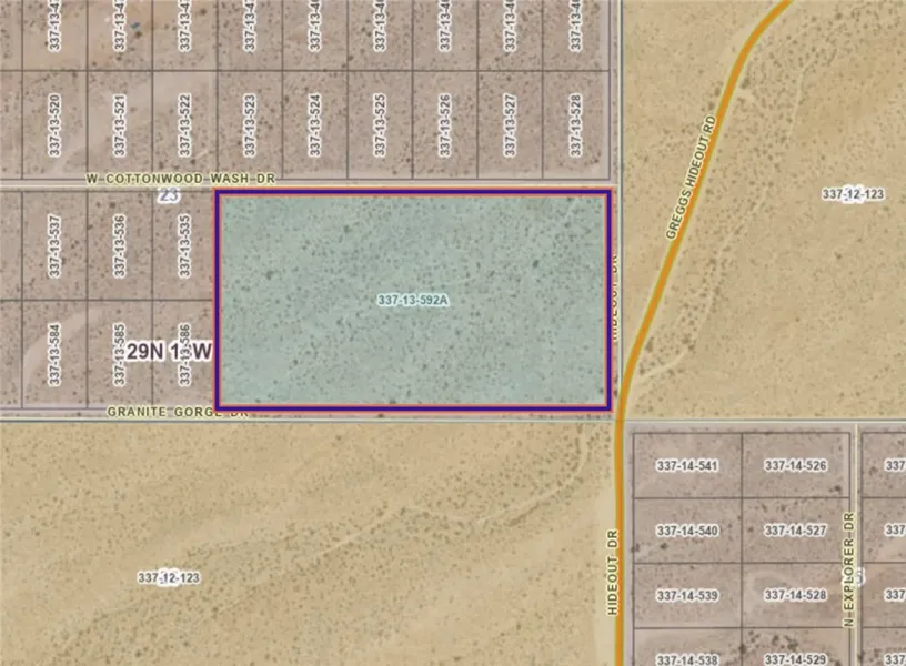 Incredible 12-Acre Opportunity in Lake Mead Ranchos Subdivision! Don't miss this rare chance to own 12 acres of land in the highly sought-after Lake Mead Ranchos subdivision! Nestled near the iconic Lake Mead and Grand Canyon West, this unique property offers stunning natural surroundings and endless potential. Situated on the corner of county-maintained Greggs Hideout Road and Granite Gorge, this parcel is just minutes from the popular Greggs Hideout recreational area a local favorite for boating, camping, and outdoor adventures. Whether you're looking to build your dream home with ample space or explore the investment potential by subdividing into 1-acre parcels, this property offers flexibility and value.
