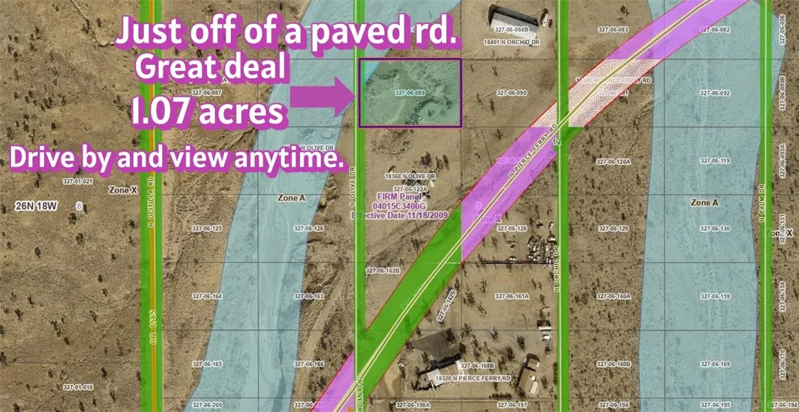 Super priced property. 1.07 acres. Not far off the paved road Pierce Ferry. Goats and chickens ok. Lots of trails for off roaders. Nice views of mountains. Lake Mohave not far for fishing and swimming. It may be a great time to own a piece of the desert. Camp out on long weekends. Drive by and view anytime.