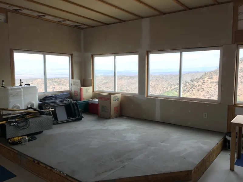 6071 Round Turn Kingman, AZ - 40 acres of high desert on Round Turn Dr, mountainous views with the Hualapai mountains to the west, Cottonwood mountains to the north and the Aquarius range to the Northeast . 1,000 sf building with metal siding and roof. Off grid home with a small solar system. Well and deep submersible a/c pump at bottom of driveway. Home Structure is dried in, and insulated, just waiting for your loving finishes, for home, cabin or retreat.