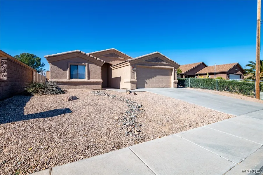 Welcome to your new home in the heart of Kingman, Arizona! This charming 3-Bedroom, 2-Bathroom, single story residence offers a perfect blend of comfort and style, creating an inviting haven. Light and bright open floorplan with vaulted ceilings and fresh interior paint offers you a blank canvas to personalize your own home. The open floor plan seamlessly connects the living area to the well-appointed kitchen, complete with modern appliances, new dishwasher, ample counter space with solid surface laminate counters, spacious pantry, and a convenient breakfast bar ideal for both casual meals and entertaining guests. The three bedrooms are thoughtfully designed with the primary bedroom on one side of the house and the other two bedrooms on the opposite side. The primary bedroom boasts its own ensuite bathroom and a large walk-in closet. Step outside to discover a delightful backyard, with b...