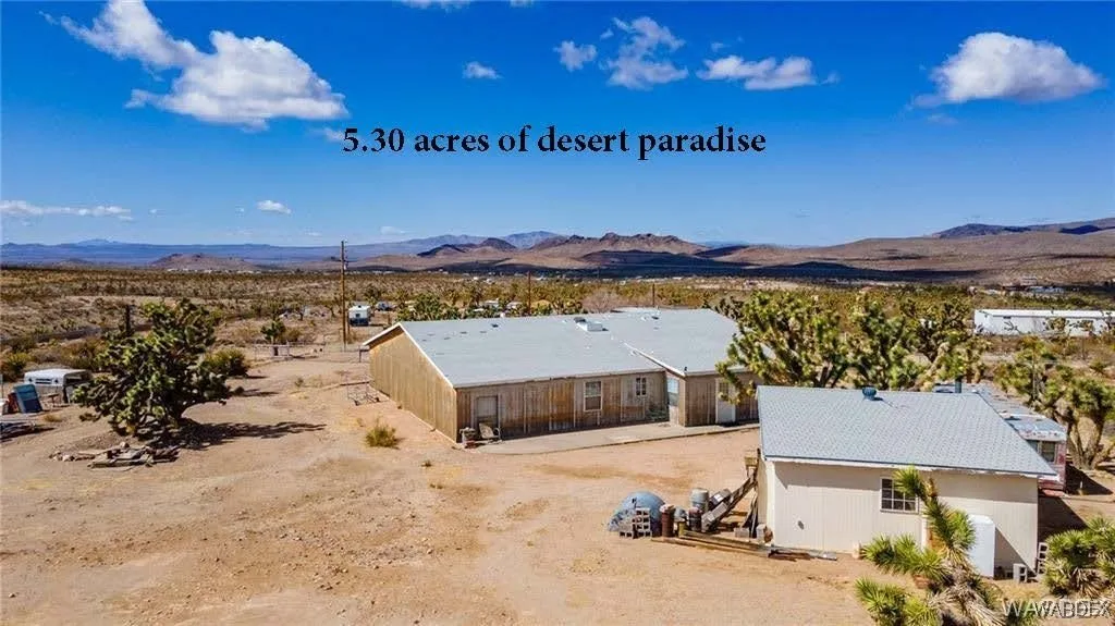 Handyman, Contractor, Builder, witness this Dolan Springs Beauty. Welcome to this exceptional 5 ACRES property( 5 parces 328-04-431, 328-03-432, 328-04-433, 328-04-434 & 328-04-470), offering unlimited views as far as you can see and a vision home waiting for the right person to bring it to life. Nestled adjacent to government land, this location provides an incredible level of privacy and serenity. This home itself boasts approx. 2,000 square feet of space, 12 BY102 WRAP AROUND PORCH, 32 BY 32 detached Garage for all your workshop or storage needs, Property offers endless potential. While the structure is not yet fully completed, Significant work has already been accomplished: Concrete Foundation, Concrete Walkway around Home, Plumbing, Some Electrical, Framing, Septic System, Unisource Power with an active Meter, Roofing, Windows & Doors. So much Material has already been purchased and is on-site, ready to be utilized to complete this project. Property is partially fenced and features a secure gate, adding an extra layer of seclusion. This is a rare opportunity to customize and finish the home exactly how you ve always dreamed. Whether you're seeking a peaceful retreat or a spacious family home, this property offers the perfect canvas to create a truly unique space. Don t miss out on this extraordinary chance to turn your dream home into a reality!