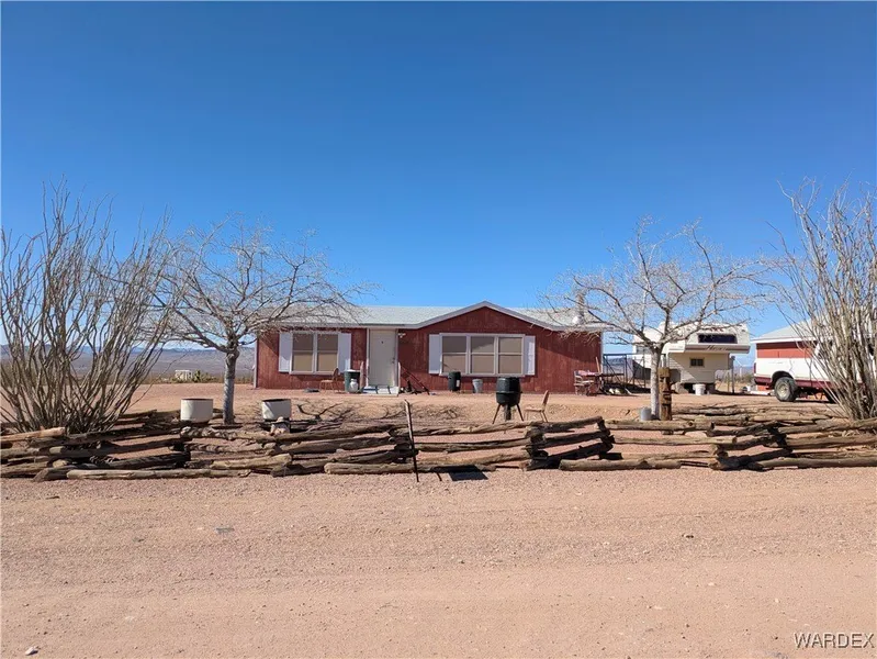 Update, new primer on house, choose your color for house to be painted! Comfy 2 bedroom/2 bathroom with new roof ready to move in, as is sale! 1 Acre Lot with a Wheelchair Ramp in the back of the house providing easy access for anyone needing the extra accessibility. Everything goes with the property, including a garage full of tools. Conveniently located in Golden Horseshoe Ranchos with an HOA to keep the roads in good shape. (Around $100 per year). The home is ready to go including a water meter and power already at the property! Fully functional home in the desert of White Hills, AZ. Get to Vegas or discover Arizona from this convenient location near Hwy 93. Call your agent to schedule a viewing. All offers considered. Thank you! (ONE ACRE LOT NEXT DOOR FOR SALE)