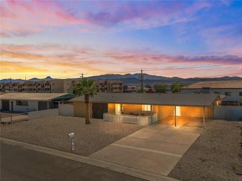 Welcome to your perfect Lake Havasu getaway! This charming 3-bedroom, 2-bathroom retreat is only 0.5 miles from the Lake, Rotary Park, and a variety of restaurants and shops you could even walk to the beach or park! Whether you're seeking a peaceful escape or a lucrative Airbnb investment, this home delivers. Inside, you'll find a bright and spacious living area that flows effortlessly into the dining space and kitchen perfect for entertaining or relaxing with family and friends. The split floor plan gives the primary suite extra privacy, complete with an en-suite bathroom, while two additional bedrooms and a second bath sit on the opposite side of the home. Step outside to your private backyard oasis, ideal for making memories. Gather around the firepit, sip drinks at the tiki bar, or fire up the grill for a barbecue. It's the perfect spot for stargazing or enjoying warm desert evenings. With Rotary Park, the lake, and local dining just a short stroll away, you'll have endless opportunities for boating, fishing, picnics, and more. This is more than just a home it's a lifestyle.