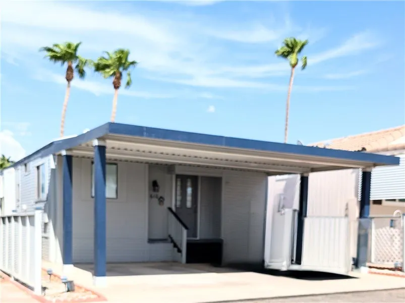 On the Golf Course with the most beautiful views of the pond and fountain. Watch the golfers and the abundant wildlife from the comfort of your own home. Fabulous 2 car+ covered parking. Newer exterior paint, roof, vinyl plank flooring, microwave and mini split. The second bedroom is currently being used as a walk-in closet but can easily be converted back. Spacious Livingroom, large dining room and a nice, enclosed patio. Laundry is in the home and is shared with a half bath. The second bath has a walk-in shower. This is a rare 2/2 on the golf course. These do not come available very often. This gorgeous home is located in the prestigious Riverview Resort located just minutes from the Colorado River and Laughlin, NV. The Resort is gated and guarded 24/7 for your peace of mind. The Resort consists of 697 lots and abundant amenities and activities to keep you busy. Executive par 3 Golf Course that is rated top 5 in the US. Pickleball, tennis, indoor shuffleboard, card room, craft room, billiard room, library, fully equipped gym with showers and saunas, 2 pools, 2 hot tubs and a huge ballroom that hosts dinners dances with live bands, craft fairs, bingo and more. This is truly an adult playground. You own the land and the HOA dues are 325.00 per month and include sewer, water, trash and cable TV. What a deal!!! *Age restrictions apply *Pet restrictions apply