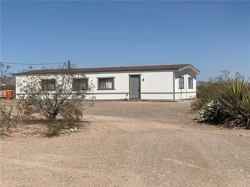 Partially open floor plan that's spacious and versatile. Offers options for dining area, family room or potential to split off as a separate den. Vinyl plank flooring throughout. Unique curved panel/glass partition wall between kitchen and living area. Curved breakfast bar with plenty of counter space. Plenty of cabinets! Built in hutch. Kitchen extends to hall walkway with a built-in. buffet. Large utility room laundry area, storage, backdoor entrance and access to hall bathroom. Good size bedrooms, Master has bathroom with tub/shower combo and a linen closet. Home is all electric with propane capabilities. Views of Black mountains, with easy access to hiking trails, off roading, horseback riding trails or perfect for star gazing. Close to paved road. Approximately 40 minutes to Laughlin for water sports, fishing, gambling, or fine dining. GREAT OPPORTUNITY, CALL YOUR REALTOR TODAY. Any...