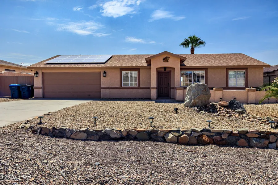 Welcome to 3130 Palo Verde Blvd South! This home has OWNED SOLAR, so you can kick your high electric bills to the curb! It also features three bedrooms, two bathrooms, an open floor plan, granite tops, stainless appliances, and clean, crisp finishes throughout. You won't be short of space for entertaining inside or outside here! The expansive backyard has a sparkling pool with a large baja shelf, cocktail table, and water feature. You'll enjoy lounging around under the giant shade sail or relaxing in the large hot tub. Bring your toys and utilize the side parking with RV hookups, and you even have room to expand on the .3 acre lot! This home comes fully furnished with everything you see, so just pack a swimsuit and toothbrush and enjoy some Havasu life! 3130 Palo Verde Blvd S is also an active vacation rental, so if you're in the market for an investment property, this is the one for you!